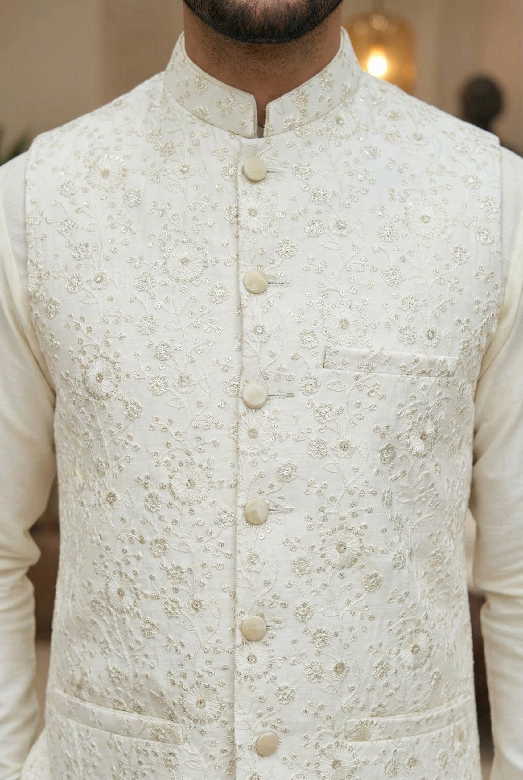 Men Off White Waistcoat