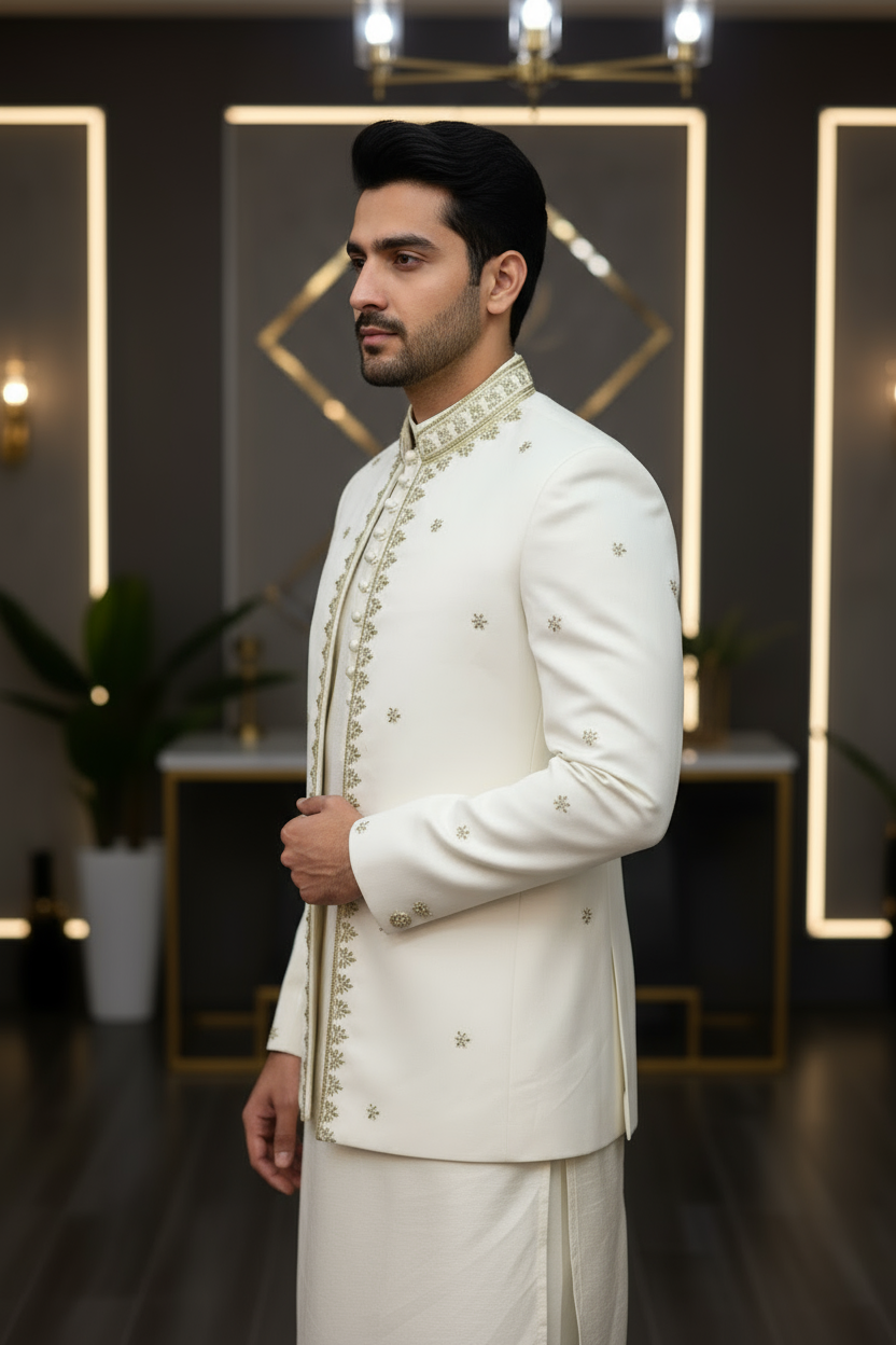 Premium Stylish Off-White Color Open Prince Coat