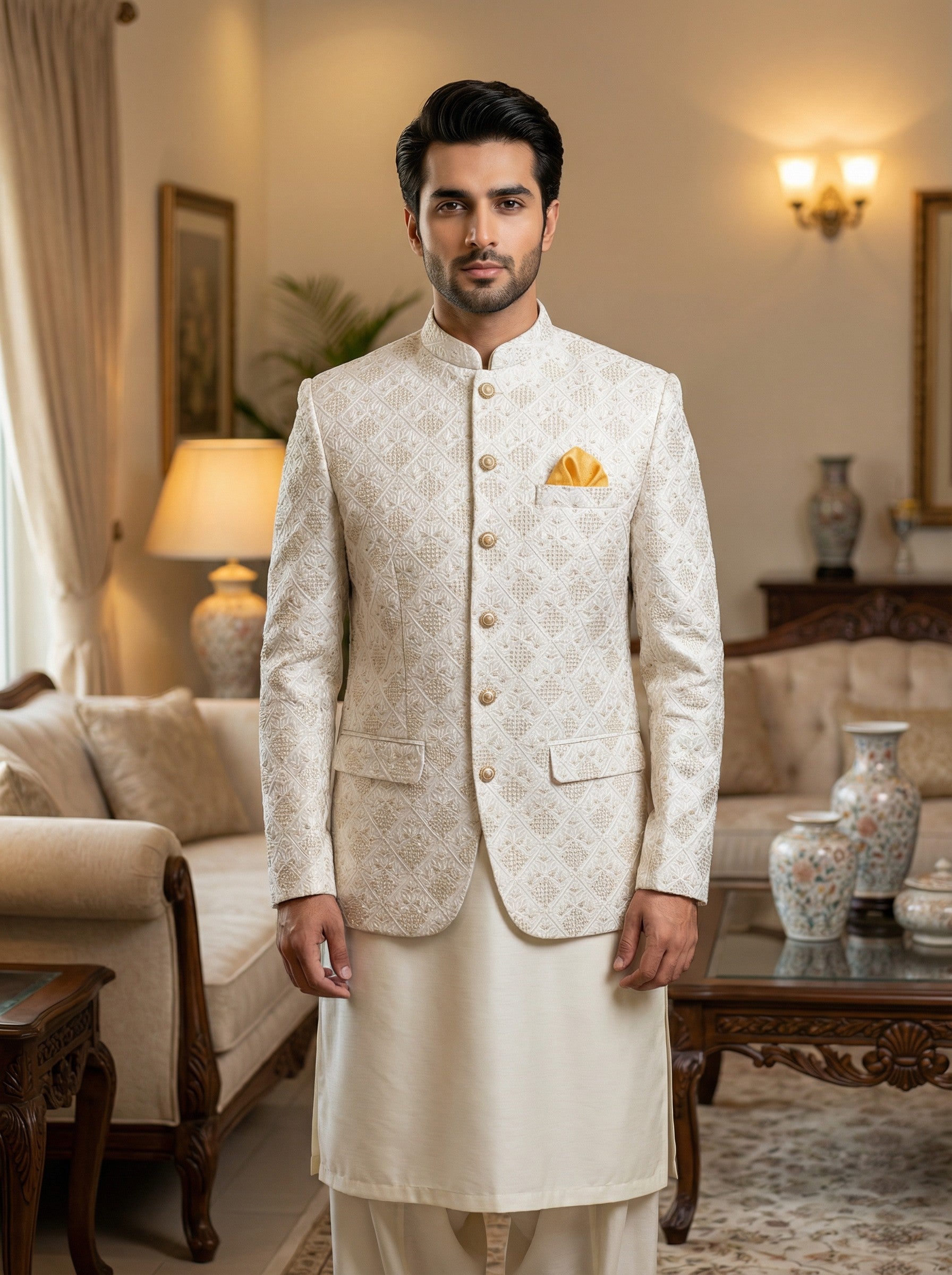 Premium Stylish Off White Prince Coat